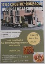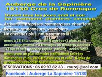 At Cros de Ronesque in the Cantal region, open 7/7. Two 28-cover and 12-cover rooms accessible to people with reduced mobility. Reservations recommended. Bar (license IV) with alcoholic and non-alcoholic beverages.