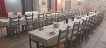 Traditional gourmet cuisine. Daily full menu: €18. Every Sunday lunchtime, a themed menu, regional or other, at €26 - on reservation. Meals available at any time, by prior arrangement. Free Wifi. Catering service. Takeaway meals. We also offer 3 cosy double rooms upstairs. As well as a natural camping area, equipped with communal facilities, fully fenced and adjoining the hostel, with children's playground. Ideal for motorhomes. We also cater for groups and associations, as well as theme meals. Please contact us for suggestions.
