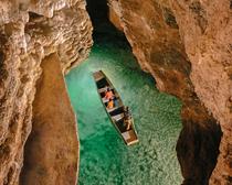 Embarquez, ici se vit l'extraordinaire ! Premier site du patrimoine naturel souterrain français, cette cavité naturelle de 33 mètres de diamètre et 75 mètres de profondeur vous ouvre les portes d’un incroyable voyage au centre de la Terre. En ascenseur ou par l’escalier, plongez au cœur d'un gouffre luxuriant jusqu'à atteindre 103 mètres de profondeur. Explorez ensuite les vastes galeries avant d’embarquer sur la rivière souterraine avec nos guides-bateliers. Cette traversée vous mènera vers une multitude de merveilles géologiques sculptées par la nature depuis des millions d'années et découvertes en 1889. Venez vivre une incroyable aventure souterraine !