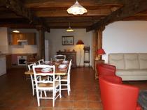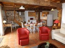 Au RDC : séjour de 45m2 avec coin salon équipé d'un poêle à bois, espace repas et cuisine ouverte, grand canapé , TV écran plat et cabinet de toilette avec WC. A l'étage: 1 ch avec un lit 160, 1 ch avec 3 lits 1 pers, WC indépendant, grande salle d'eau éclairée par un velux. Terrasse , espace vert , salon de jardin, barbecue, parking privatif pour voiture, vélo ,moto . Draps fournis et lits faits à l'arrivée. A disposition : VTT, ping pong, Kit Bébé. 2 Gîtes mitoyens, pour séjours "retrouvailles" en famille ou entre amis (si location des 2 gîtes en février : 950 €/sem). Salle de détente commune: vélo elliptique, rameur, stepper, bibliothèque et lecteur CD, babyfoot .Accès wifi avec fibre .