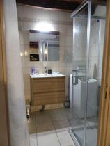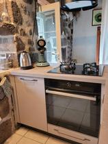 Au rez de chaussée, elle est composée d'une pièce à vivre avec un coin cuisine alliant le moderne et l'ancien, une salle d'eau avec douche et WC ainsi qu'un lave linge. Vous y trouverez tout l'équipement pour cuisiner avec de quoi démarrer votre séjour.