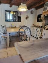 La maison est sur 3 niveaux et a gardé tout son charme avec son poêle à bois dans le cantou (cheminée) et ses pierres.