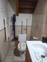 Au 1er étage, une grande chambre avec un lit double, des rangements et la TV. Un cabinet de toilettes avec un autre WC s'y trouve également. Vous trouverz des livres et quelques jeux sur les étagères.