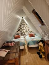 Au 2ème étage, une chambre mansardée avec 2 lits individuels électriques, quelques jouets.